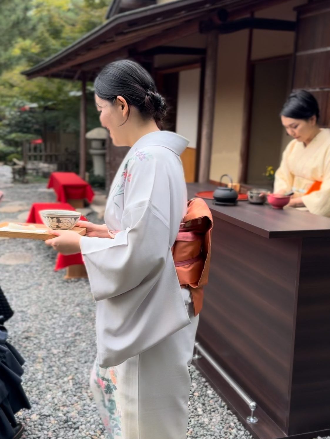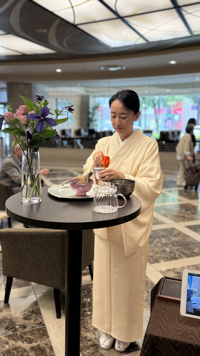 マンツーマンですので、気兼ねなくお話ししながらテーブルスタイル茶道を知っていただくことができます。