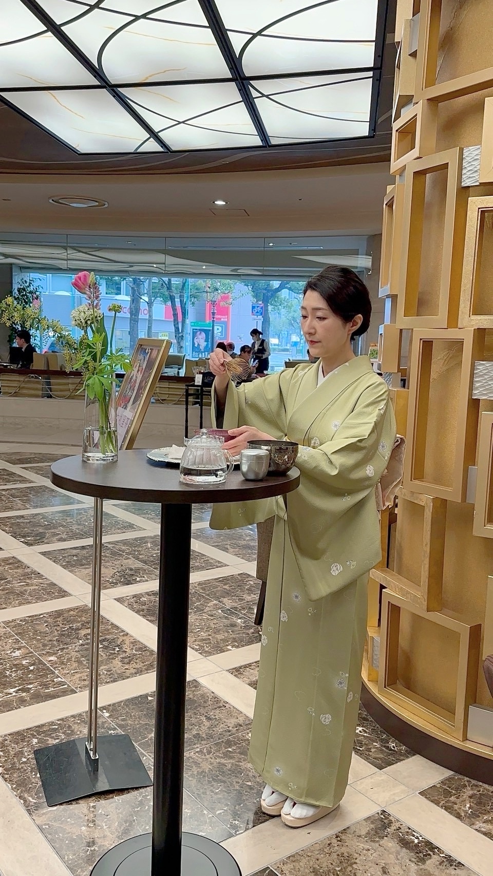 - ホテルロビーでの呈茶の様子(四季のしつらえと所作)